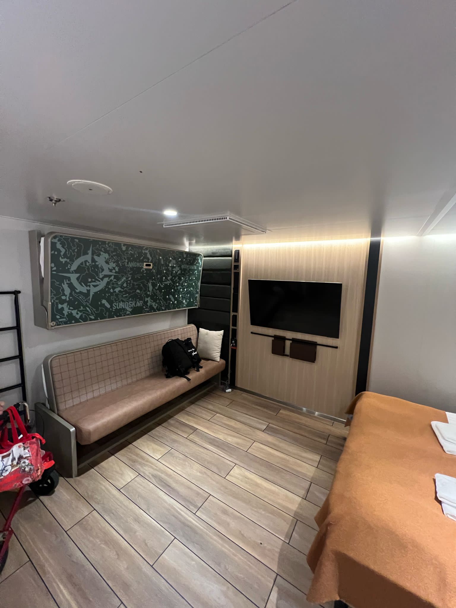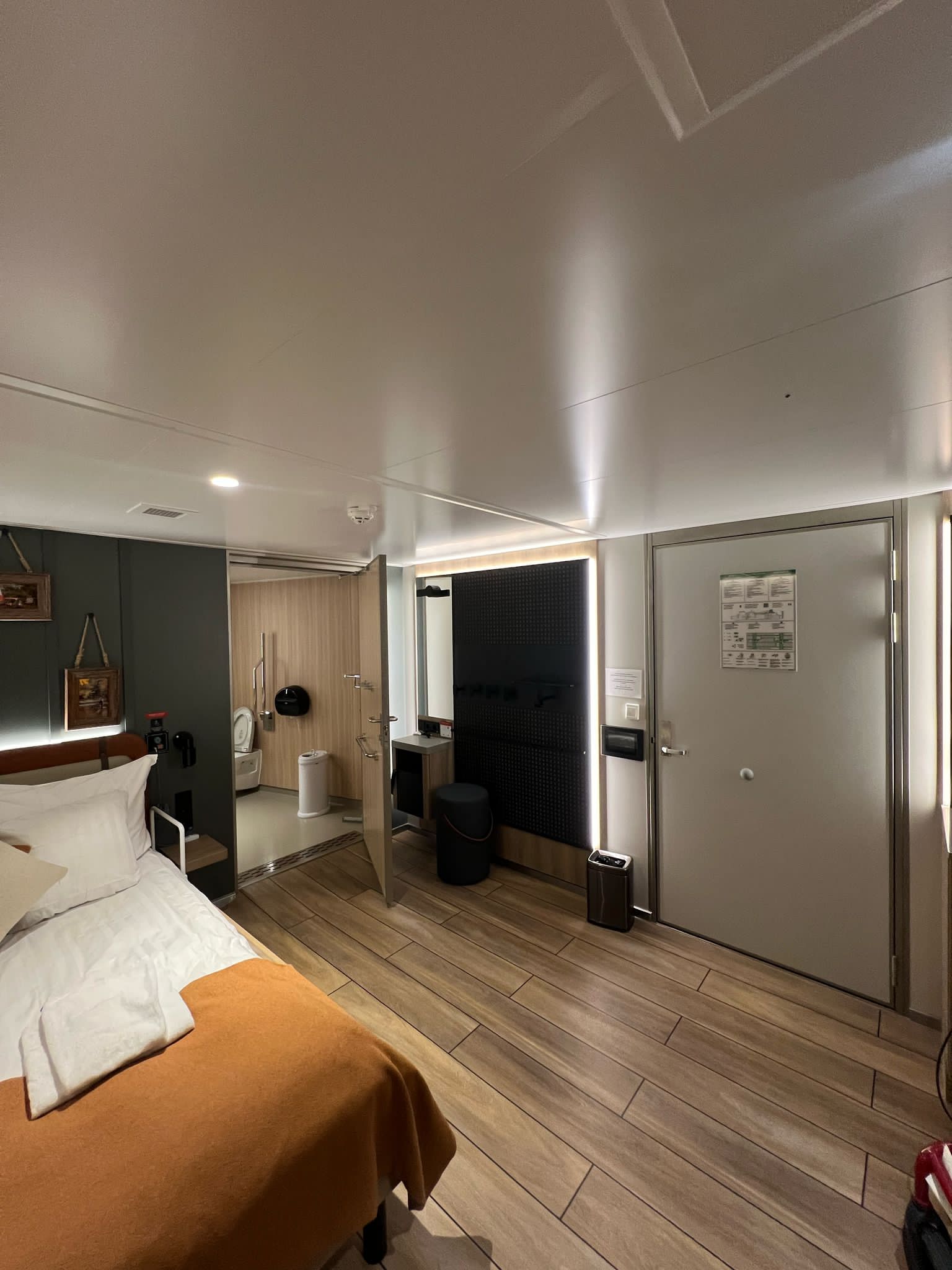 Paluumatkan laiva -osuuden menimme Kapelskäristä Naantaliin Finlinesin Finsirius lautalla. Heidän hyttinsä oli TODELLA tilava. 🤩😀