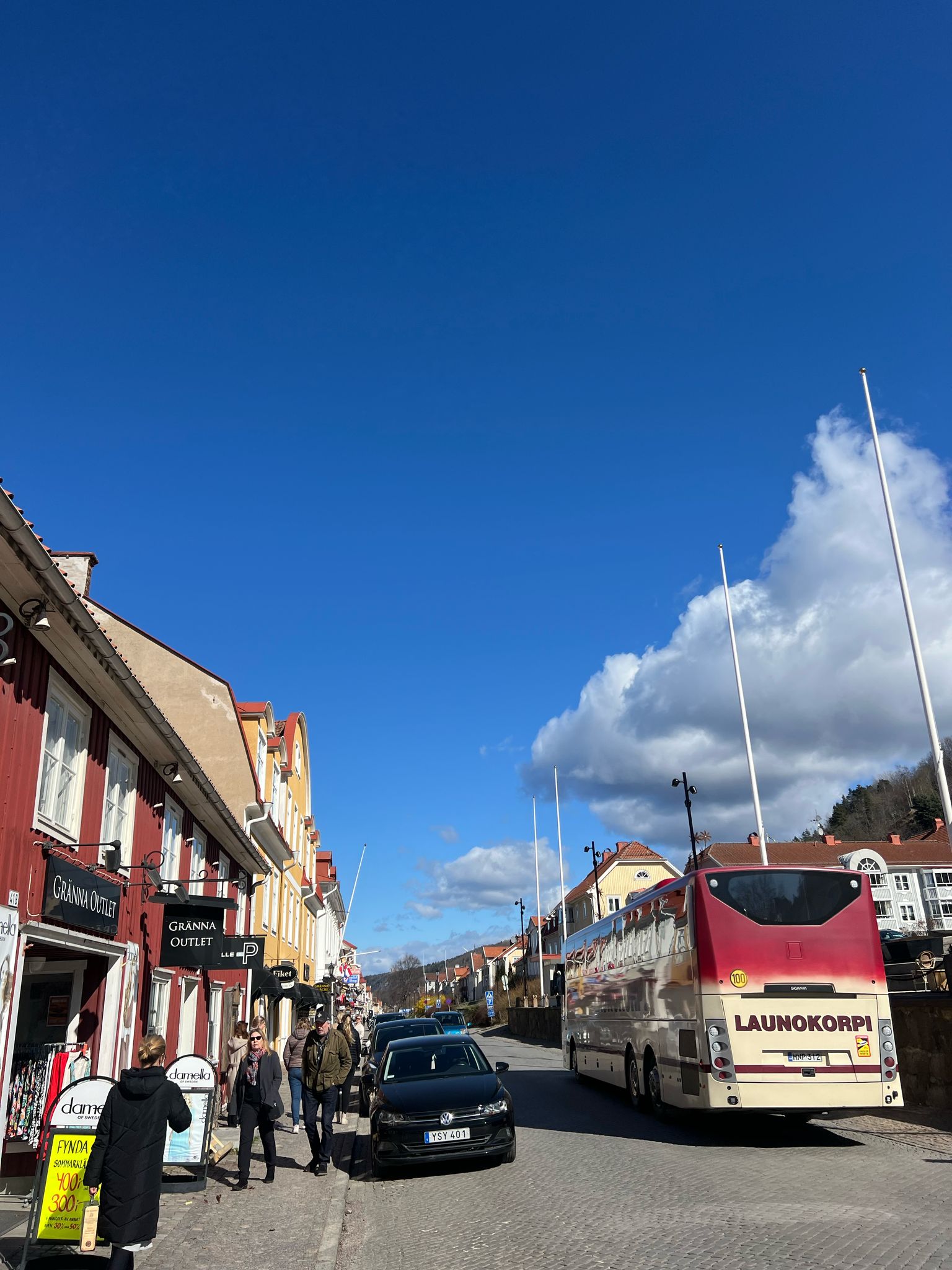 Menomatkalla menimme Viking Linen Gracellä Turusta Tukholmaan, josta jatkoimme bussilla E4 tietä lounaaseen. Maisemat olivat upeita kukkuloineen ja vuorineen, sekä ison Vättern -järven vierestä kulkien.